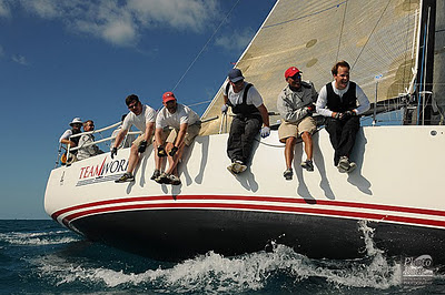 Key West Race Week finished strong this year, with one more sunny and windy sailing day on Friday. So that makes four terrific race days, one perfectly placed mid-week lay day, and 6 evenings of fun at Kelly’s Caribbean. It doesn’t get much better than that. Pictured here: the Teamwork crew looking good on Friday before racing to seal their first place position in PHRF 1. Other division winners included Ran (Mini Maxi), Quantum Racing (52 Class), Antilope (IRC 3), Barking Mad (Farr 40), Red (Farr 400), Carbonado (High Performance), Samba Pa Ti (Melges 32), New England Ropes (Melges 24), Groovederci (Farr 30), Le Tigre (J/80), and L’Outrage (PHRF 2). See the full results here and the photos here.